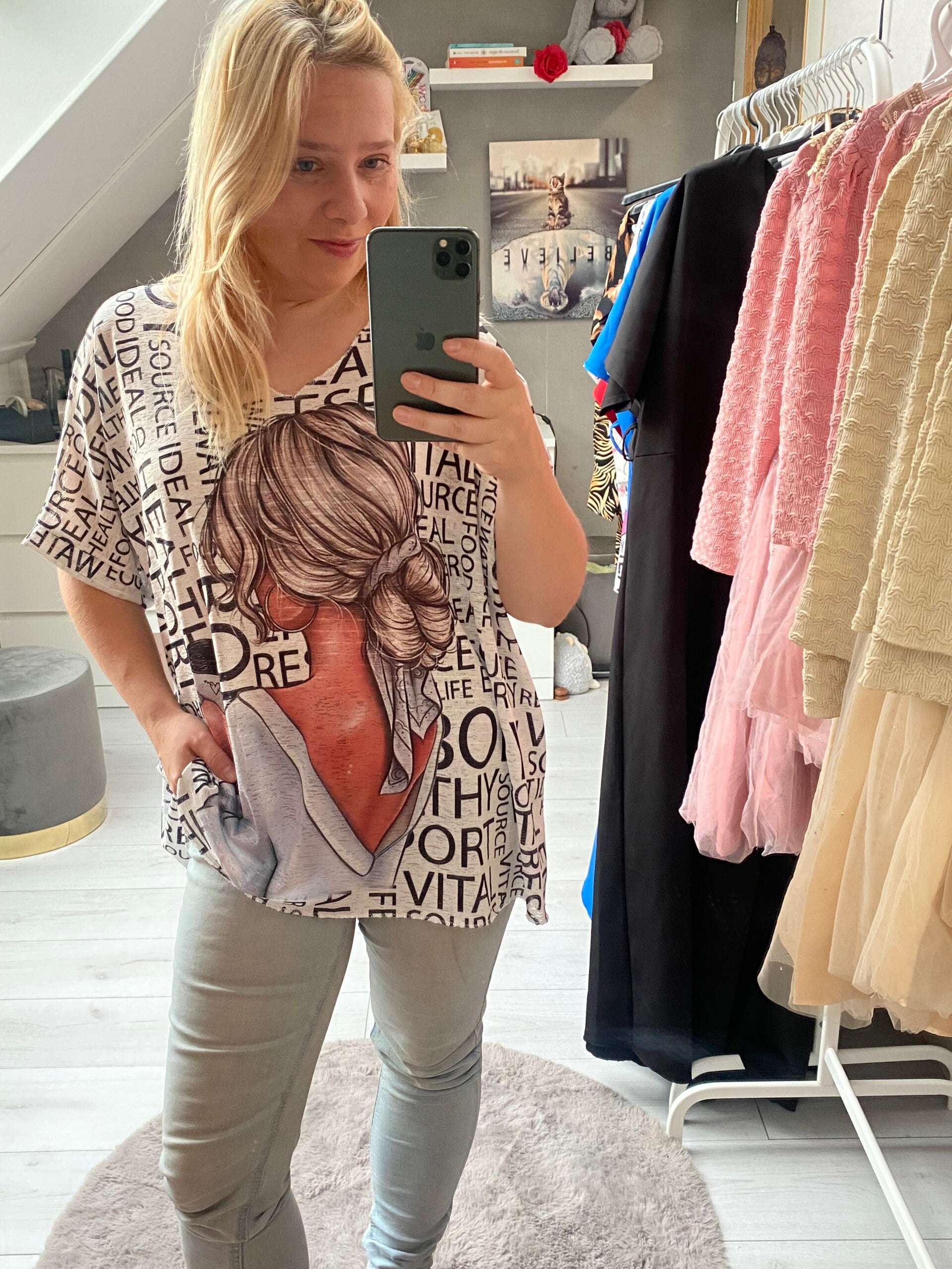 stof : 60% polyester 35% viscose 5% elastaanmaat : 40 44pasvorm : het t shirt valt op maatartikelcode : 000000004