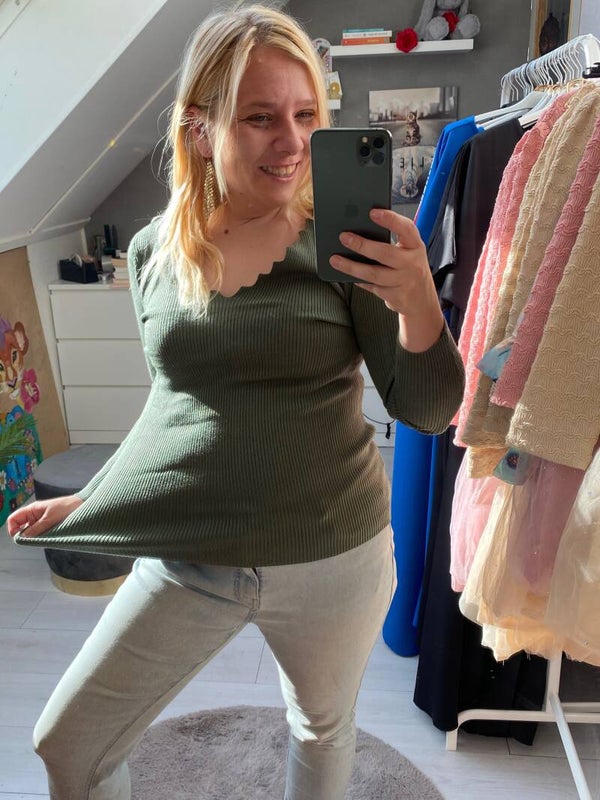 pasvorm : model is 155 draagt maat 36/S, zit enorm veel stretch in en kan gedragen worden tot maat 42